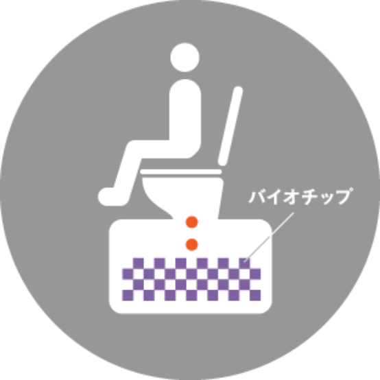バイオトイレは、バイオチップに含まれる微生物が人間の排泄物を水と炭酸ガスに分解します。