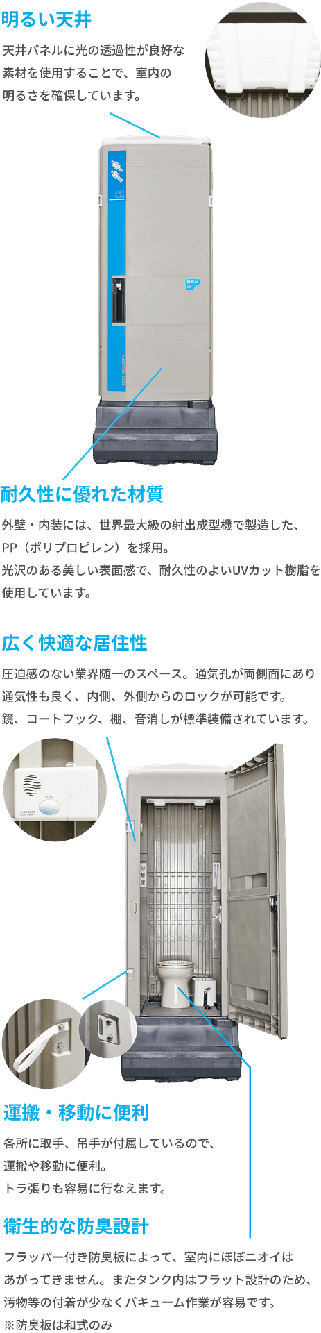 「ビューティースカーレット」は仮設トイレ業界初・唯一となるグッドデザイン賞を受賞したBSKのトップセラーシリーズ。