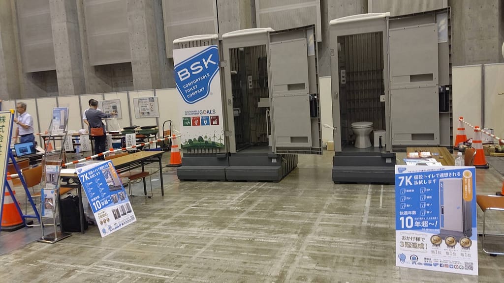 2024年9月23日に開催された山梨県建設協会主催の「第7回建設まつり」にて、弊社BSKの仮設トイレを出展いたしました。本イベントは、地域の建設業の重要性や最新技術を紹介する場であり、多くの業界関係者や地域の皆さまが集まりました。BSKの仮設トイレは、広くて、明るいなど多くの方々にご好評いただきました。今後も、私たちは安心・快適な仮設トイレの提供を通じて、建設現場の環境改善に貢献してまいります。